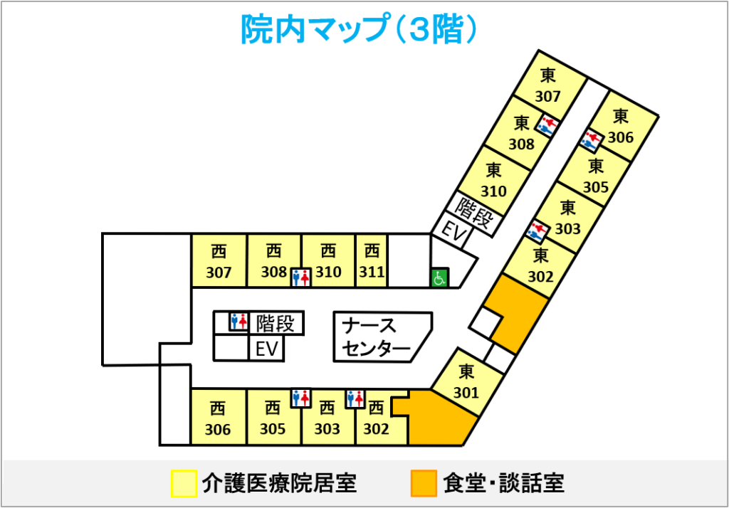 | 2階(一般病棟) | 2階(療養病棟) | 3階(介護医療院) | |