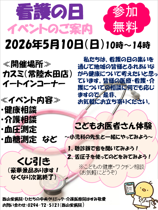 5月10日(日)カスミ常陸太田店さんにて「看護の日の集い」を開催いたします。